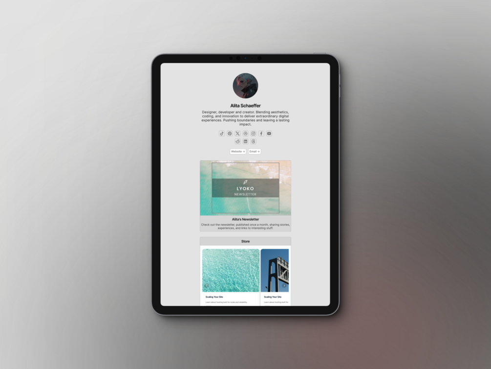 The perfect Framer template for those who want to make a quick website that links to anything they like, whether it's your newsletter, latest products, latest video, or social profiles.