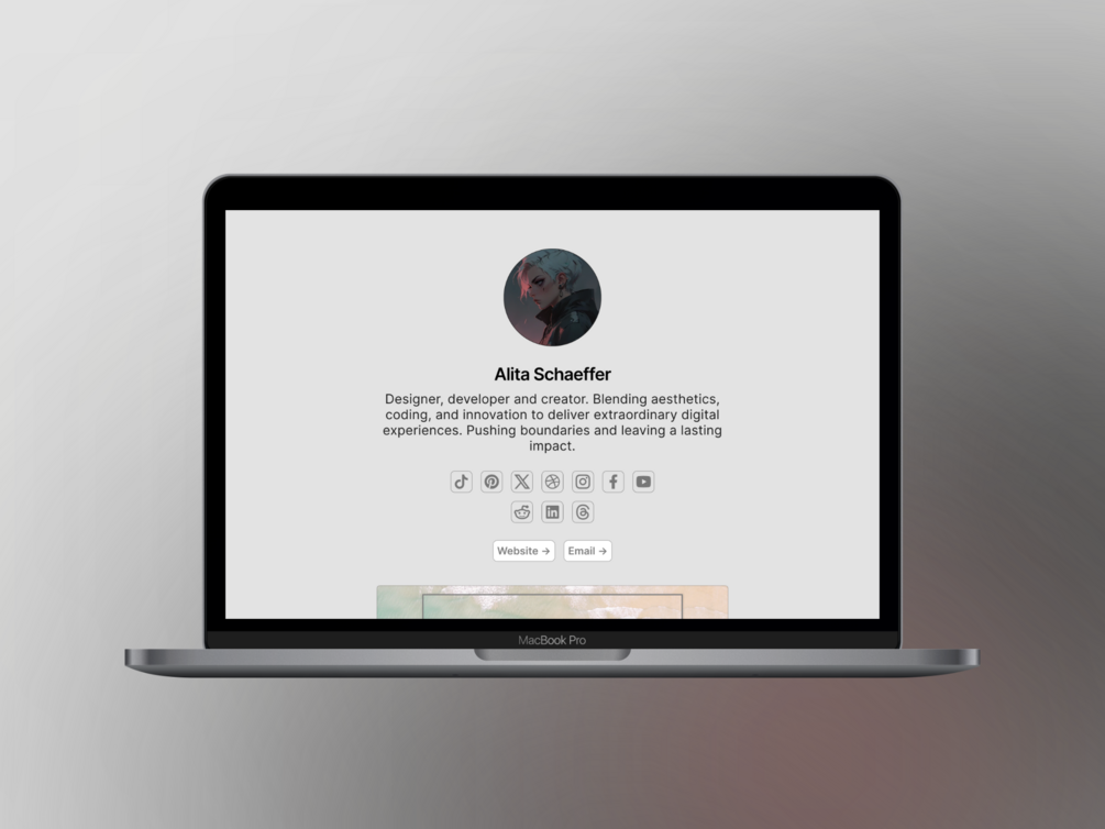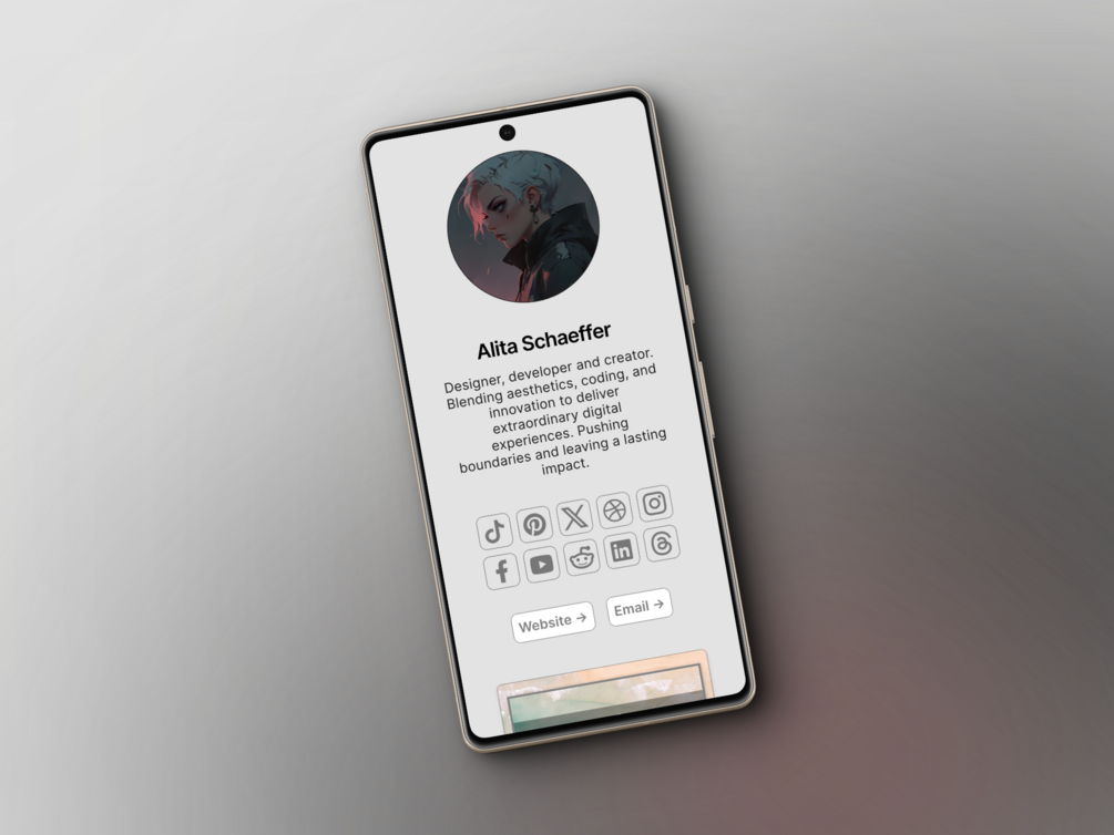- Clean and minimalistic framer template for creating a stunning link-in-bio page.